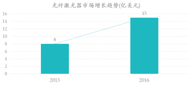 2016年全球光纖激光器市場突破百億(yi) ,中國市場占47億(yi) 元。