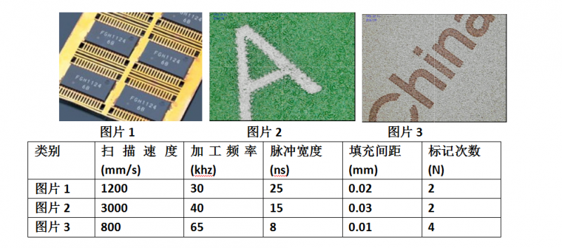 加工特點:低平均功率,小單脈衝能量,高頻率,多角度填充,高速度掃描