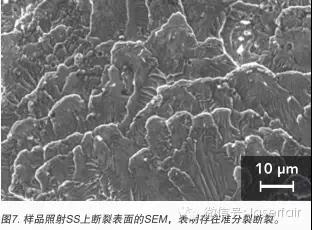 portant; word-wrap: break-word !important;">圖7顯示使用自體(ti) 激光連接工藝連接樣品時通過電子顯微鏡觀察到的典型斷裂表麵。表麵形態表示準分裂斷裂,如上所述,相信斷裂出現在接頭之內(nei) 而不是基材之內(nei) 。對於(yu) 低掃描速率(最高1 毫米/秒)實驗,最高接頭強度達到大約275 MPa。雖然該強度大約等於(yu) 不鏽鋼的屈服應力,但是,未觀察到斷裂之前不鏽鋼金屬絲(si) 之內(nei) 的可感知塑性變形。最近開展的更高速率和功率(8瓦時高達2毫米/秒)實驗已經顯示斷裂應力超過470 MPa。人們(men) 相信提高掃描速率能夠使熱量更加局部化和聚積,以在較短持續時間形成較小的熔化池,因此導致基材之間的混合降低以及金屬間形成和演化過程減少。