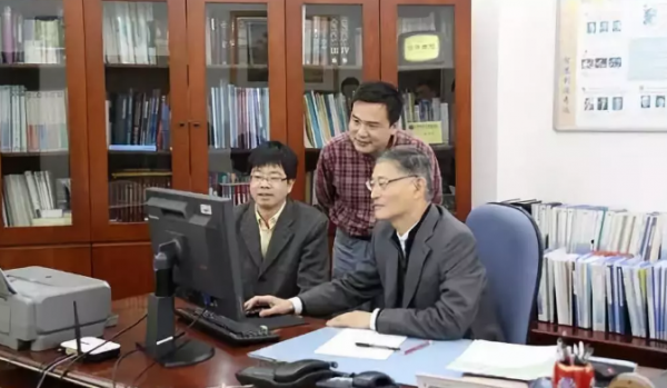 徐至展和他培養(yang) 的兩(liang) 位學生一起討論學術問題