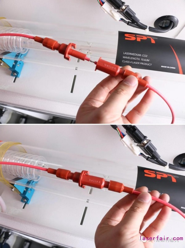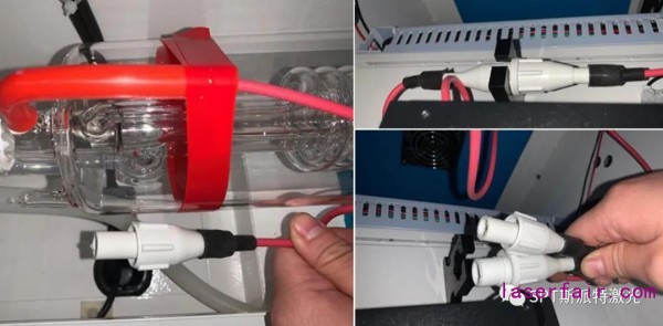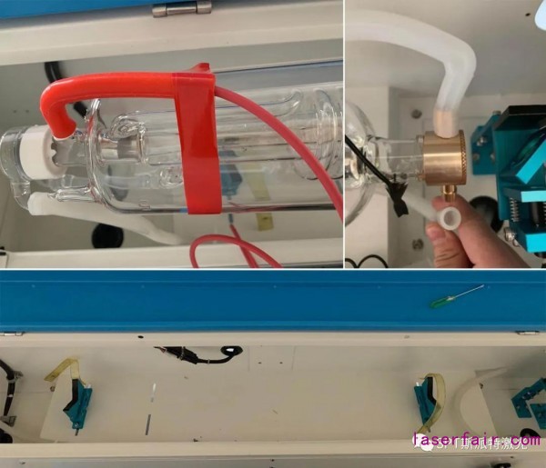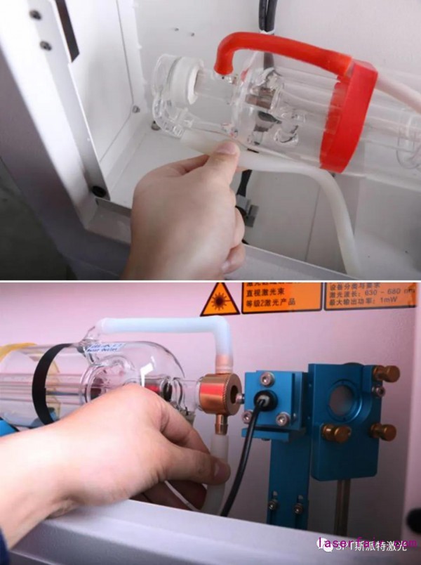 冷卻水應采用軟水(蒸餾水或純淨水),冷卻水的水溫應控製在25℃~30℃範圍,確保冷卻水充滿冷卻管,管內(nei) 不能有氣泡。確保流量在2L~4L/分鍾,否則效果不好,會(hui) 引起跳模,光斑變幾個(ge) 點導致功率下降;冷卻水回水口在水箱內(nei) 一定要被水淹蓋,否則會(hui) 出現關(guan) 開機時激光管內(nei) 冷卻水灌不滿現象。