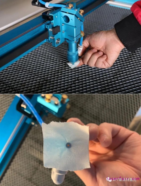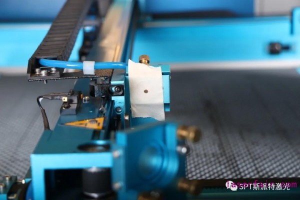 聚焦的光應在激光切割頭的中心 調節光路時,首先要將各個(ge) 反射鏡調節到大致垂直於(yu) 水平麵的位置,並與(yu) X 方向保持 45°角。此時反射鏡架與(yu) 鏡架固定板之間的三個(ge) 調節螺釘的長度要大致相同。 第一步:調節 1#反射鏡。保證激光管發出的光束入射在 1#反射鏡的中心。 第二步:調節 2#反射鏡。在 2#反射鏡的光路調節輔助架貼上雙麵膠紙(或其它能打出標記的物體(ti) ),將橫梁移至最靠近激光管的位置,按點射按鈕(控製適當的光強),使激光在膠紙上留下標記(注意:為(wei) 防止激光輻射傷(shang) 人,請先用一塊紙板測試出光斑的大概位置,然後再進行調整)。 第三步:逐漸將橫梁移至離激光管最遠的位置,再按點射,在 2#反射鏡的膠紙上再打上一個(ge) 標記。 第四步:如果兩(liang) 個(ge) 標記不重合,調整 1#反射鏡,使 2#反射鏡膠紙上的兩(liang) 個(ge) 標記中心重合。 第五步:反複第二步至第四步,直至兩(liang) 個(ge) 標記中心完全重合。 第六步:在 3#反射鏡前貼上雙麵膠紙(或其它能打出標記的物體(ti) ),將小車(激光頭)移至最靠近 2#反射鏡的位置,按點射按鈕(控製適當的光強),使激光在3#反射鏡的膠紙上打上一個(ge) 標記。 第七步:將小車(激光頭)移至距離 2#反射鏡最遠的位置,按點射(先用一塊紙板,先測出光斑的大概位置,以防傷(shang) 人),再在 3#反射鏡的膠紙上打上一個(ge) 標記。 第八步:如果 3#反射鏡膠紙上的兩(liang) 個(ge) 標記不重合,調整 2#反射鏡,使這兩(liang) 個(ge) 標記中心重合。 第九步:反複第六步至第八步,直至兩(liang) 個(ge) 標記中心完全重合。 第十步:在 3#反射鏡下麵聚焦鏡筒的入光口處貼上雙麵膠紙,按點射,在紙上打上標記。如果如果標記在膠紙的中心處,則光路調整完成。 第十一步:若激光未落在入光口的中心,如下圖,則要按照以下步驟進行調節,直到激光點射標記落在出光口處雙麵膠紙的中心處。 上下偏差:將激光管抬高或降低。 裏外偏差:將激光管向裏或向外調整
