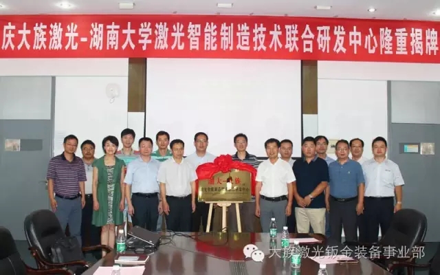大族激光鈑金裝備事業(ye) 部總經理陳燚、總工程師陳根餘(yu) 等高層管理人員,湖南大學副校長劉金水,機械與(yu) 運載工程學院黨(dang) 委書(shu) 記彭曉燕、副院長楊旭靜、副院長劉堅等出席揭牌儀(yi) 式。