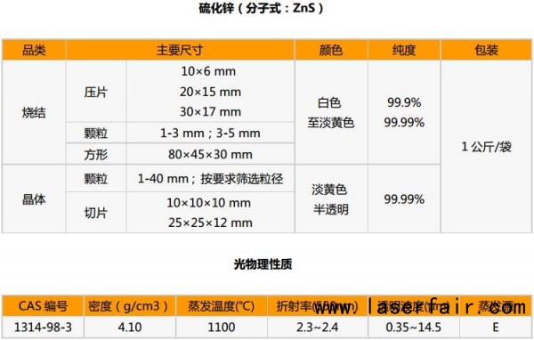 硫化鋅是一種高折射率材料,能夠使用在光學及光電的應用,