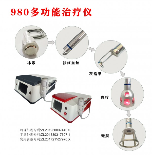 980nm激光+13.56Mhz高頻技術,二合一,可祛除深層、表層、粗的、細的各類紅血絲(si) 。 |