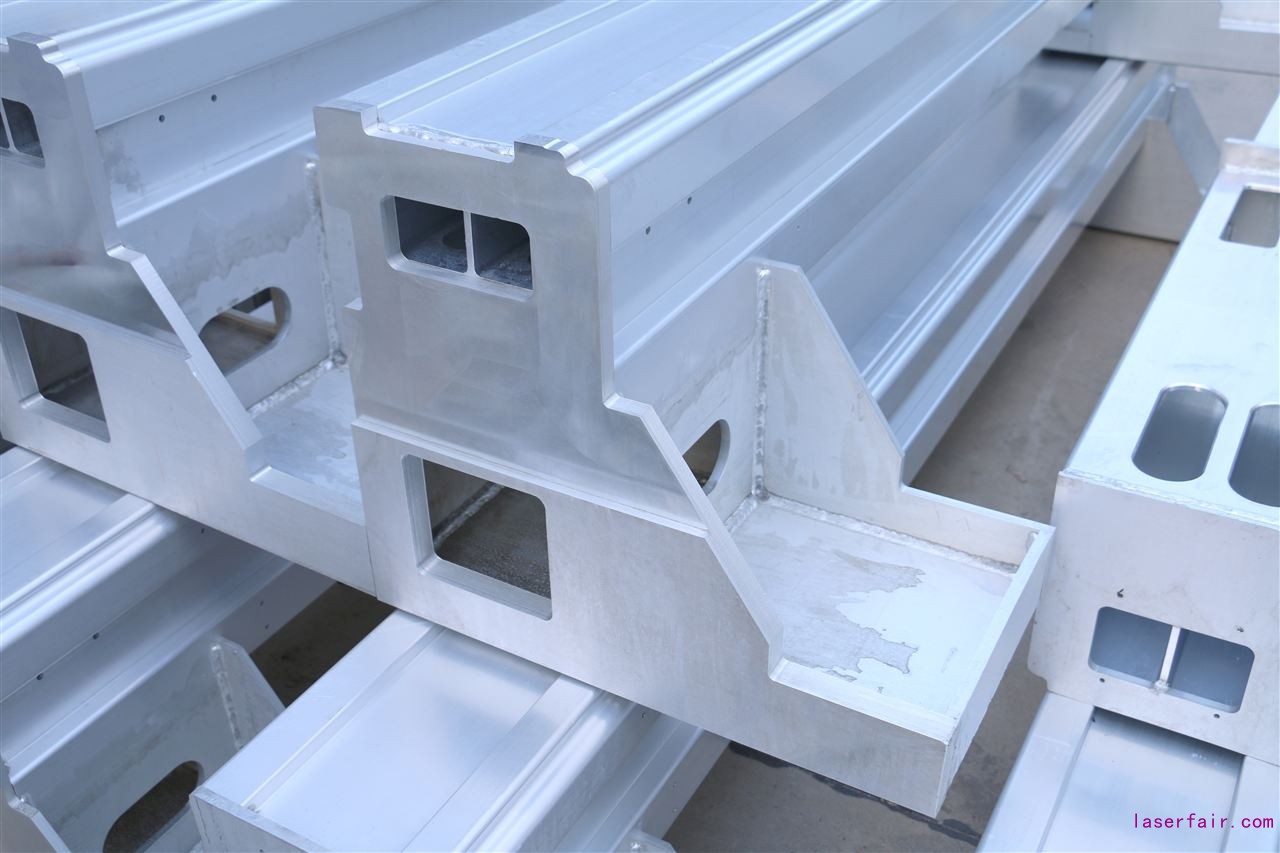 1、橫梁采用航-空鋁材質(航-空鋁是目前激光切割機橫梁使用的好材質),擠壓一體(ti) 成型拉模工藝,一致性好,不會(hui) 出現氣泡、裂紋和破邊的現象,擠壓出來的橫梁四麵均勻,表麵光滑。