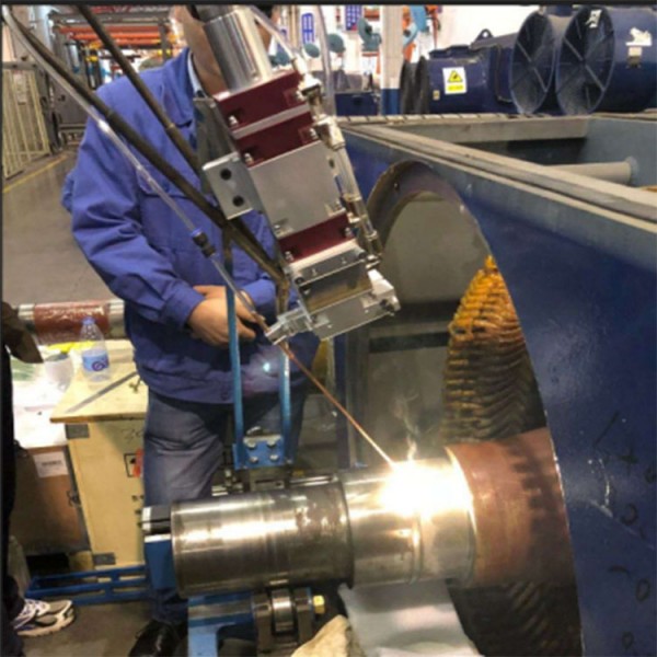 多功能熔覆/淬火設備主體(ti) 采用六軸機器人設計,配置變位機、旋轉主軸箱、尾座、托架及人機界麵控製係統,各部件可以實現聯動;配置具有加熱功能的雙伺服電機控製的雙筒高精度送粉器,可實現精準送粉的同時對粉末預熱烘幹;全水冷熔覆/淬火頭可實現24小時連續作業(ye) ;該設備最大回轉直徑Ø1400mm,裝夾工件最大長度10000mm,最大承載能力10T;可實現軸類、盤類零件的外圓及複雜曲麵熔覆/淬火,也可對內(nei) 孔進行熔覆/淬火。該類設備可根據客戶需求提供個(ge) 性化設計。