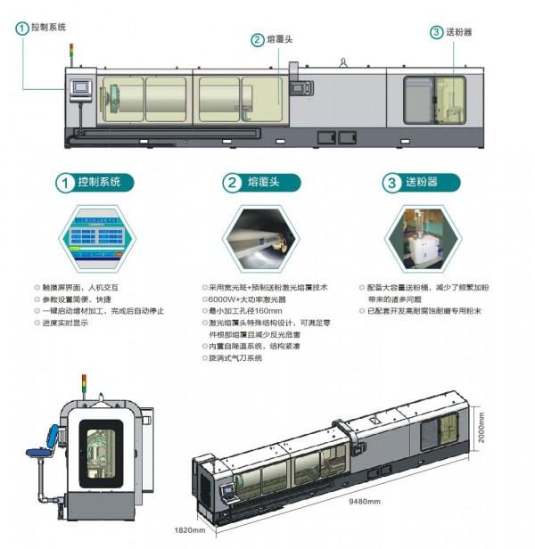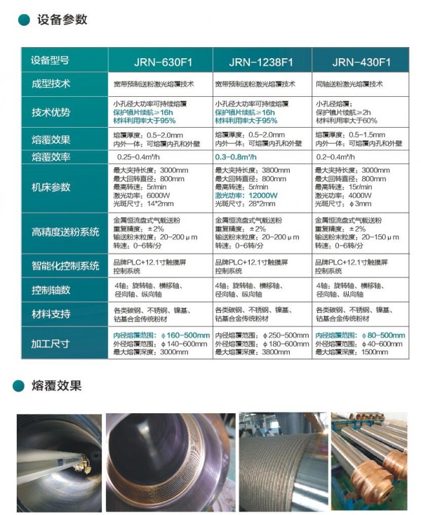 熔覆效率高達0.25-0.4㎡/h;單層熔覆厚度可在0.5mm至2.0mm區間靈活調節;熔覆致密度、硬度、耐蝕性等指標行業(ye) 領先。