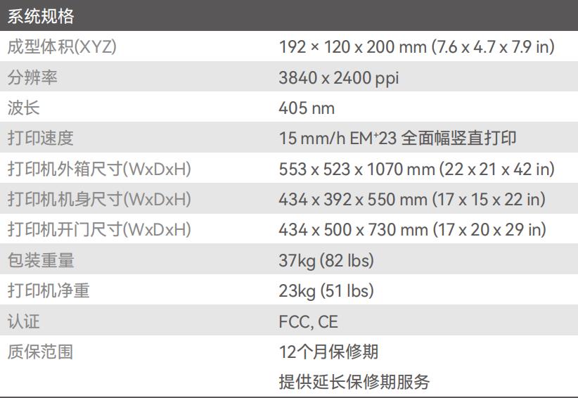 成型體積:192x120x200mm(XYZ)