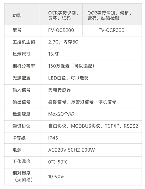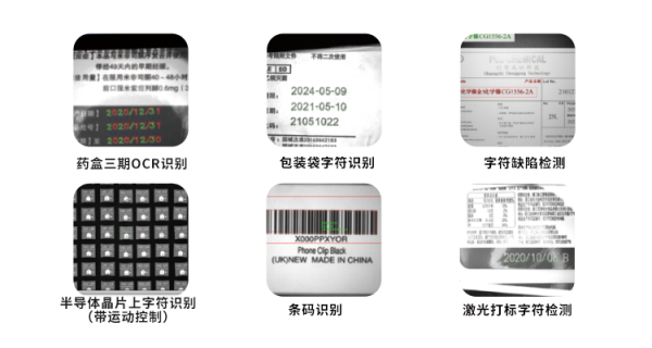 有無檢測、字符內(nei) 容識別、字符位置判斷、字符缺陷檢測、字符變化檢測、條碼識別。
