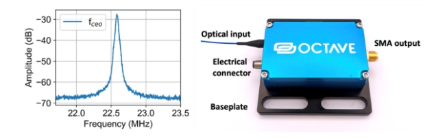 Octave Photonics的光頻梳偏頻測量模塊(COSMO),為(wei) 測量載波包絡偏移頻率(fceo)的f-2f自參考鎖定過程提供了一種緊湊且方便的解決(jue) 方案。COSMO運用了非線性波導技術產(chan) 生超連續譜,將頻譜擴展到至少一個(ge) 倍頻區域,通過低頻翻倍與(yu) 高頻進行重疊,從(cong) 而精準測定fceo。同時,COSMO可以用極低的脈衝(chong) 能量檢測目標頻率,從(cong) 而實現更低的功耗或更高的重複頻率。