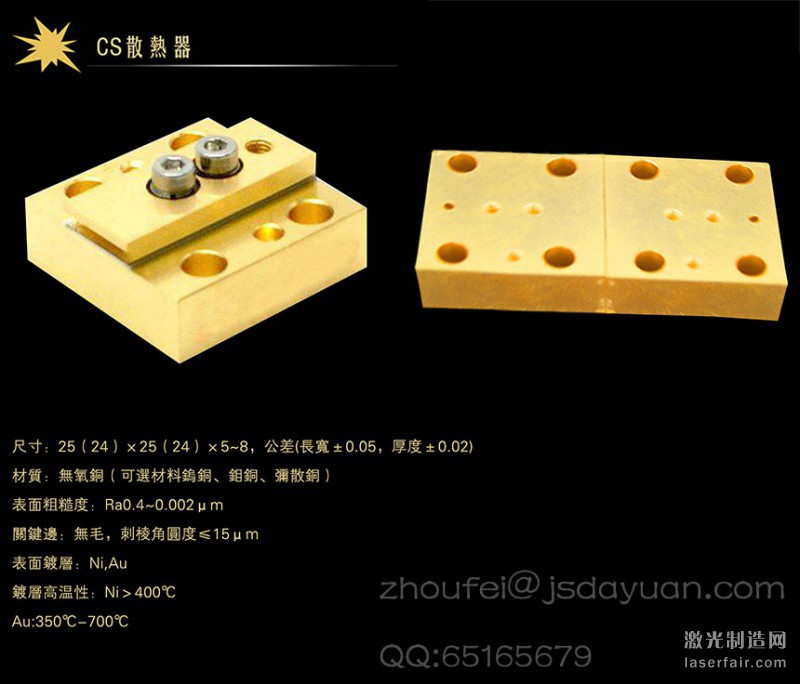 半導體(ti) 大功率激光器封裝熱沉CS散熱器,heat sink