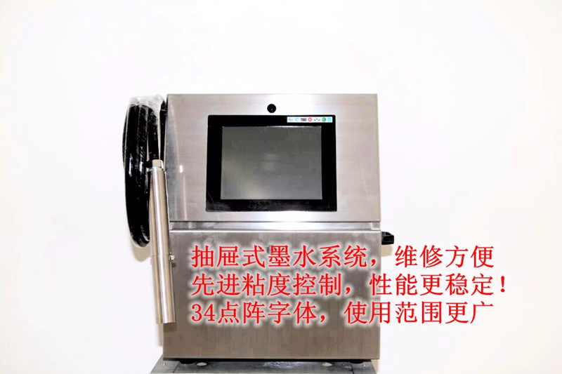 一、描述:小字符噴碼機為34點陣噴印,墨路係統和噴嘴經過創新性改良,可更多的適應不同的墨水需求。卓越的穩定性能,高清晰度的打印質量,該款機器適應各個行業、 多種標識需求的性價比高的自動化標識設備