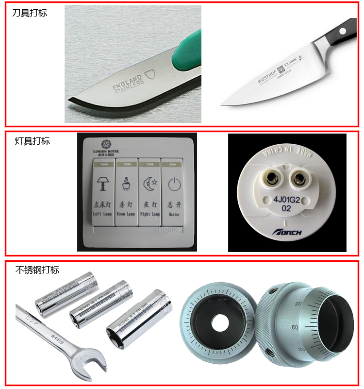 應用市場:定位於激光精密微細加工與自動化配套的結合; 公司生產各類激光高端光纖激光打標機,高速光纖激光打標機,精密激光加工設備,自動化激光成套設備,主要產品包括:激光打標機、模具激光深雕機、光纖深度激光打標機、高速激光噴碼機、昆山激光打標二維碼,自動激光焊接機、精密激光切割機等工業激光設備,以及提供激光配套自動化生產線、高端精密加工業務,產品特色是高精度,低功耗,效率高 加工成本低等。為客戶提供成套解決方案。涉及領域包括:電工電器激光打標,眼鏡激光打標,手機通訊、五金製品、工具配件、精密器械、首飾飾品、眼鏡鍾表、集成電路、工藝禮品、塑膠模具、醫療器械等行業。產品遠銷歐美及其他國家和地區。