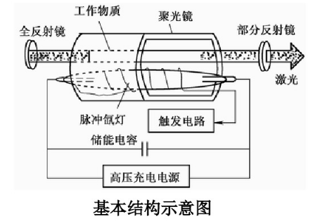 工作物質、泵浦係統、諧、振腔和冷卻、綠光係統構成的。下圖則是長脈衝(chong) 固體(ti) 激光器基本結構的示意圖(冷卻、濾光係統未畫出)。