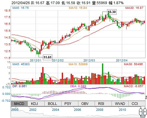今 開: 16.67 成交量: 55968手 振 幅: 3.07% 最 高: 17.09 成交額: 9467.22萬(wan) 換手率: 1.37% 最 低: 16.58 總市值: 75.34億(yi) 市淨率: 2.86 昨 收: 16.60 流通...