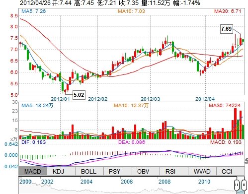 | 今 開: | 7.44 | 成交量: | 115196手 | 振 幅: | 3.21% |