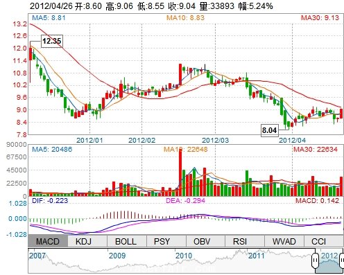 今 開: 8.60 成交量: 33892手 振 幅: 5.94% 最 高: 9.06 成交額: 2997.62萬(wan) 換手率: 1.74% 最 低: 8.55 總市值: 18.01億(yi) 市淨率: 3.74 昨 收: 8.59 流通市值...