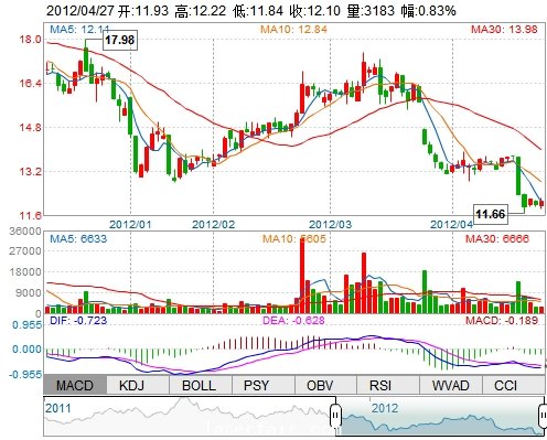| 今 開: | 11.93 | 成交量: | 3182手 | 振 幅: | 3.17% |