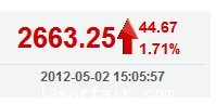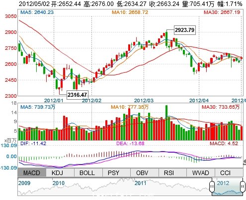 今 開: 2652.44 最 高: 2676.00 最 低: 2634.27 振 幅: 1.59% 昨 收: 2618.58 成交量: 7054099手 成交額: 897479.21萬(wan) 換手率: --
