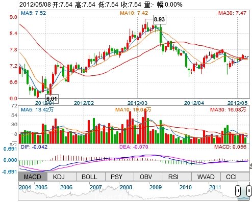 昨 收: 7.54 流通市值: 71.34億(yi) 市盈率TTM: 22.96