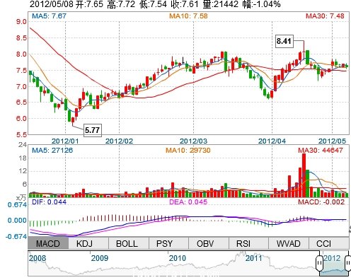 昨 收: 7.69 流通市值: 20.91億(yi) 市盈率TTM: 34.52