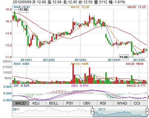 今 開: 12.68 成交量: 3112手 振 幅: 1.81%