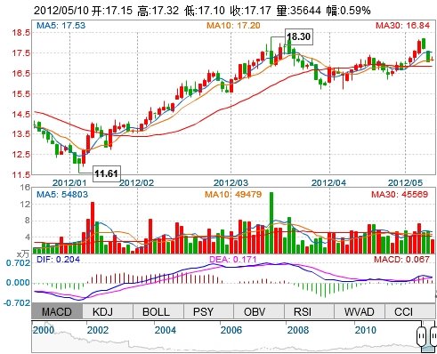 昨 收: 17.07 流通市值: 69.98億(yi) 市盈率TTM: