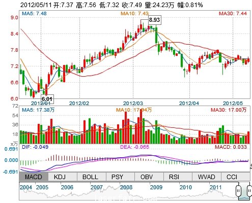 昨 收: 7.43 流通市值: 70.87億(yi) 市盈率TTM: 22.81