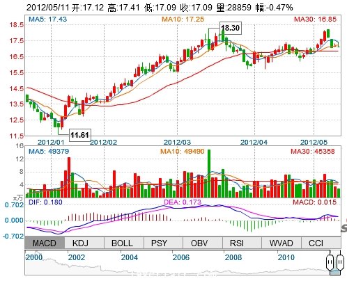 昨 收: 17.17 流通市值: 69.66億(yi) 市盈率TTM: 32.20