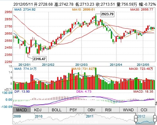 昨 收: 2733.16 成交量: 7565947手