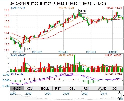今 開: 17.25 成交量: 39477手 振 幅: 2.63% 最 高: 17.27 成交額: 6739.58萬(wan) 換手率: 0.97% 最 低: 16.82 總市值: 75.08億(yi) 市淨率: 2.85 昨 收: 17.09 流通...