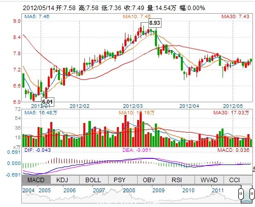 | 最 低: | 7.36 | 總市值: | 78.23億(yi) | 市淨率: | 2.63 |