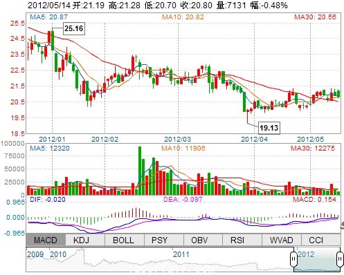 今 開: 21.19 成交量: 7130手 振 幅: 2.78% 最 高: 21.28 成交額: 1489.57萬(wan) 換手率: 0.60% 最 低: 20.70 總市值: 88.86億(yi) 市淨率: 6.27 昨 收: 20.90 流通市...