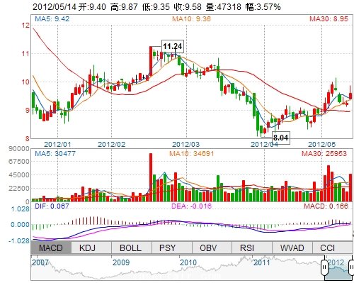 今 開: 9.40 成交量: 47317手 振 幅: 5.62% 最 高: 9.87 成交額: 4574.74萬(wan) 換手率: 2.44% 最 低: 9.35 總市值: 19.09億(yi) 市淨率: 3.96 昨 收: 9.25 流通市值...