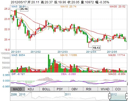 | 今 開: | 20.11 | 成交量: | 10971手 | 振 幅: | 2.04% |