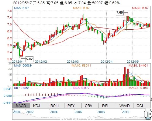 | 今 開: | 6.85 | 成交量: | 50996手 | 振 幅: | 2.92% |