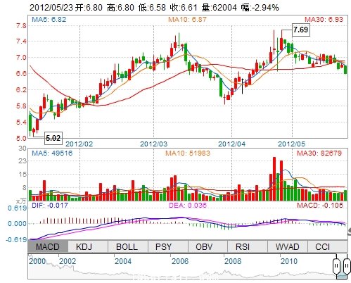 | 今 開: | 6.80 | 成交量: | 62004手 | 振 幅: | 3.23% |