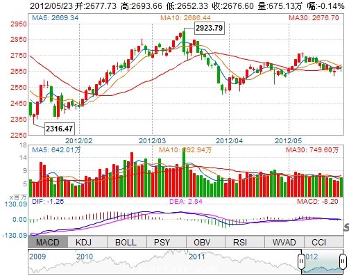 | 昨 收: | 2680.29 | 成交量: | 6751250手 |