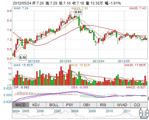 今 開: 7.26 成交量: 133567手 振 幅: 1.78% 最 高: 7.29 成交額: 9650.10萬(wan) 換手率: 1.41% 最 低: 7.16 總市值: 74.99億(yi) 市淨率: 2.52 昨 收: 7.32 流通市值...