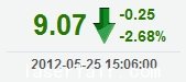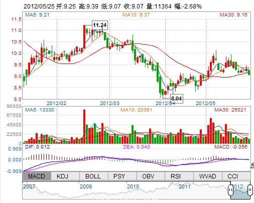 今 開: 9.25 成交量: 11363手 振 幅: 3.43% 最 高: 9.39 成交額: 1046.83萬(wan) 換手率: 0.59% 最 低: 9.07 總市值: 18.07億(yi) 市淨率: 3.75 昨 收: 9.32 流通市值...