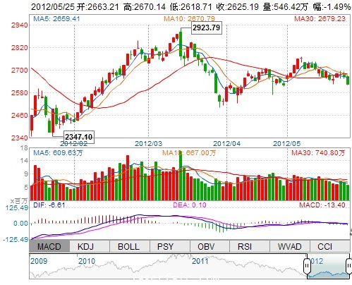 | 昨 收: | 2664.98 | 成交量: | 5464169手 |