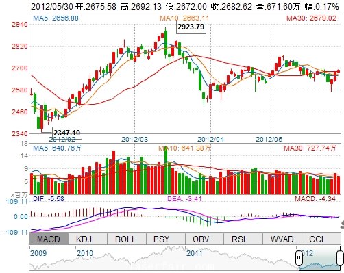 今 開: 2675.58 最 高: 2692.13 最 低: 2672.00 振 幅: 0.75% 昨 收: 2678.20 成交量: 6715962手 成交額: 902012.56萬(wan) 換手率: --