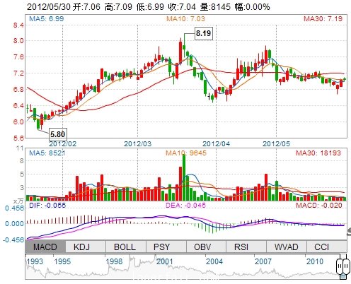 | 今 開: | 7.06 | 成交量: | 8145手 | 振 幅: | 1.42% |