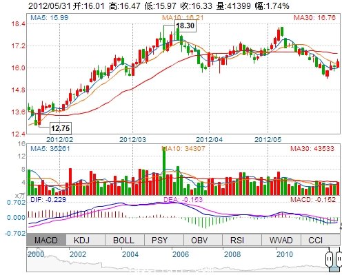 | 今 開: | 16.01 | 成交量: | 41398手 | 振 幅: | 3.12% |