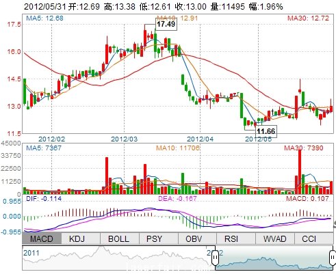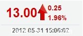 | 今 開: | 12.69 | 成交量: | 11494手 | 振 幅: | 6.04% |