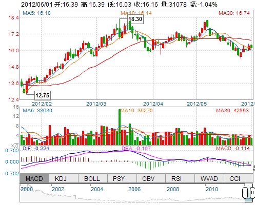 | 今 開: | 16.39 | 成交量: | 31077手 | 振 幅: | 2.20% |