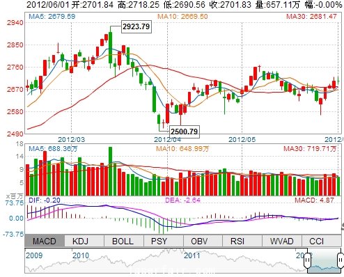 | 昨 收: | 2701.89 | 成交量: | 6571112手 |
