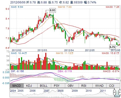 | 今 開: | 6.78 | 成交量: | 69308手 | 振 幅: | 1.92% |