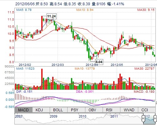 今 開: 8.50 成交量: 8105手 振 幅: 2.23% 最 高: 8.54 成交額: 685.13萬(wan) 換手率: 0.42% 最 低: 8.35 總市值: 16.72億(yi) 市淨率: 3.47 昨 收: 8.51 流通市值: ...